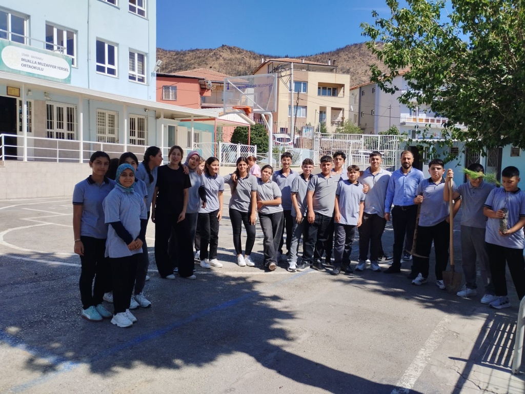 2025 2026 Eğitim Öğretim yılı Okulumuzun açıldığı ilk gün, ilk derste EBA’da yayınlanan, “Her Çocuk Bir Fidan” kısa filminin tüm öğrencilerimize izlettirilerek "Yeşil Vatan – Benim Okulum Geleceğe Çare" etkinlikleri kapsamında okulumuz öğrenci ve personeli ile birlikte okulumuz bahçesine fidan dikimi etkinliği gerçekleştirilmiştir.